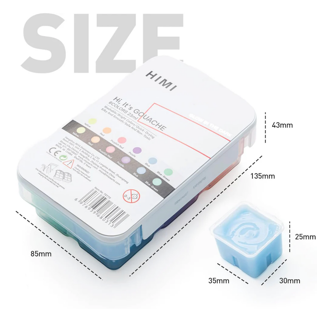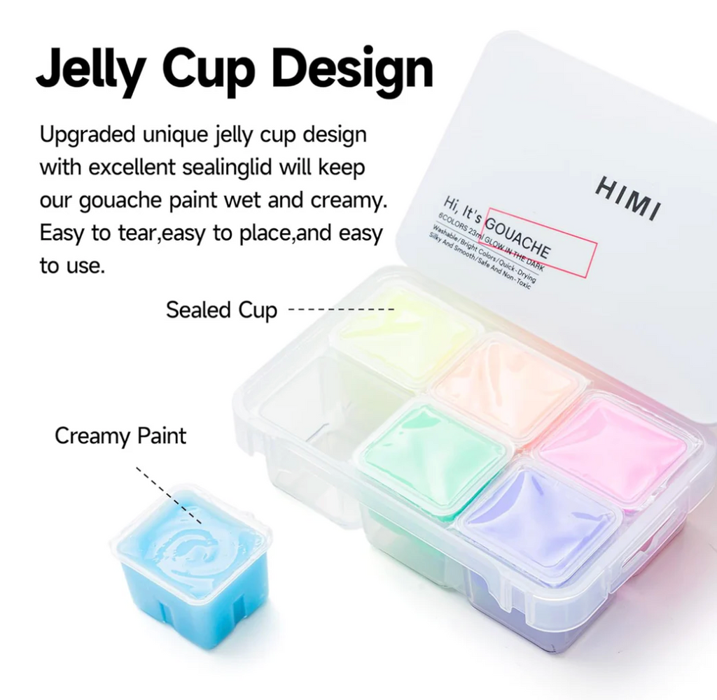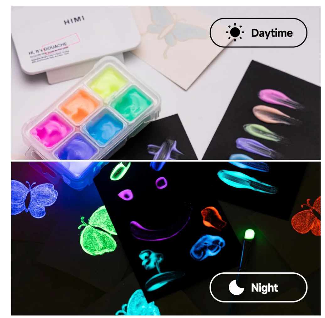 Light up your creativity with the HIMI Glow in the Dark Gouache Paint Set! Featuring 6 vibrant colors—yellow, red, purplish red, purple, blue, and blue-green—this non-toxic paint glows brightly after charging and shines under UV light. Crafted from premium raw materials, it delivers rich, long-lasting color for every artist’s masterpiece. The compact case includes double clasps and locks, keeping your paint secure even during the wildest art adventures.
